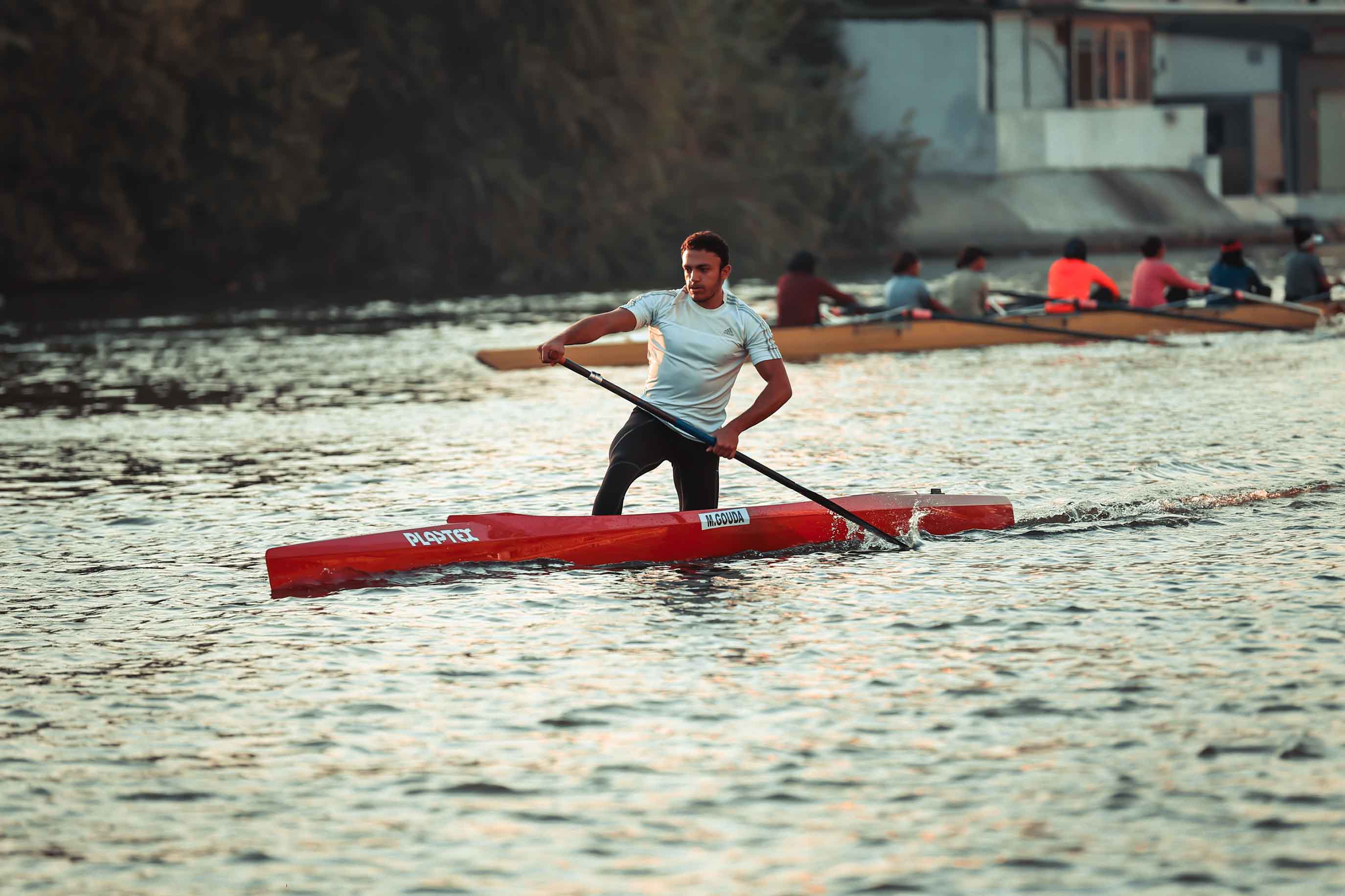 A prominent canoeist is Mohamed Tarek Mohamed Gouda, born in 2004, and one of Egypt’s rising stars in the sport. He first took an interest in sports such as swimming and handball, but eventually became interested in canoeing whilst observing athletes training on the Nile. By the age of fifteen, he had started canoeing and is now one of Egypt’s top canoeists.